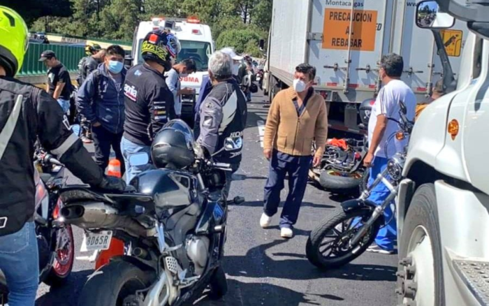 Al menos 7 motociclistas muertos y 15 personas heridas es el saldo de un choque múltiple en la carretera México-Cuernavaca, dirección a Morelos, ocurrido este domingo.