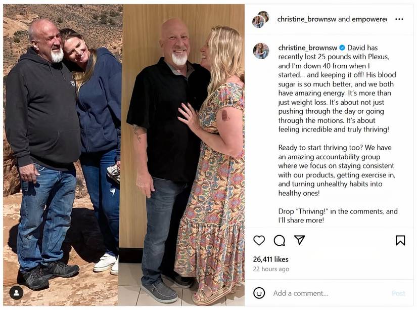 Desde entonces, Christine ha creado una nueva vida para sí misma, y a menudo la comparte en las redes sociales para inspirar a otros que pueden sentir que están atrapados en la vida. Christine Recientemente compartió una publicación en su Instagram que reveló una foto dividida de sí misma y David, mostrando su pérdida de peso combinada después de usar Plexus, el producto que Christine vende a través del marketing de varios niveles. Su subtítulo fue más profundo en su viaje saludable de estilo de vida, diciendo que ella y David han perdido 65 libras combinadas y son “Sentirse increíble” y “¡Verdaderamente prosperante!“