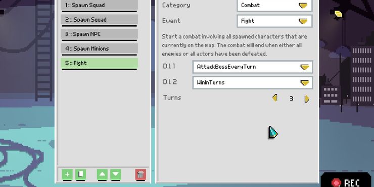 El propio editor usa una línea de tiempo de eventos, donde todas las acciones ocurren en orden secuencial. Los jugadores tienen diferentes opciones de categoría que van desde la historia, el desove, el combate y el control de la cámara. Si bien algunos de estos son más estéticos que de juego, permiten un buen control creativo.