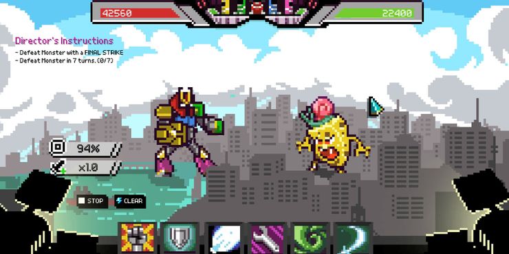 Escuadrón Chroma Los jugadores también pueden colocar batallas Mecha en cualquier momento durante un episodio. Los enemigos que luchan en este combate tienen estadísticas y ataques predeterminados, por lo que es importante hacer coincidir a los enemigos con sus temporadas originales correctas para que no sean demasiado fáciles o difíciles. Cada jefe tiene tres vidas, mientras que el Mecha tiene una por defecto, o dos si ya hay una audiencia lo suficientemente grande mirando. Es importante considerar esto, ya que si el Mecha se destruye, el episodio se bombardeará automáticamente y provocará la pérdida de fanáticos y dinero. Esto es independientemente de si hubo más en el episodio en sí, por lo que los jugadores deben evitar crear una pelea que no se pueda ganar.
