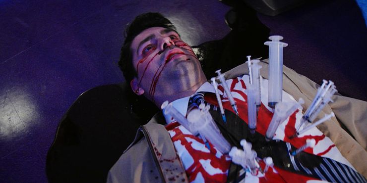 En Chucky episodio 4 “Just Let Go”, después de la fiesta en la casa de Lexy, se produce un incendio que destruye la mayor parte de la casa. Chucky, que ahora está medio quemado y demente, es llevado al hospital por el detective Sean Peyton (Travis Milne) para estar con Caroline. Después de darle a Caroline la muñeca, Peyton comienza a comer algunos bocadillos junto a la cama de Caroline, pero Chucky lo mata con varias “armas” del hospital, como un bisturí y agujas usadas. La idea de que te lancen numerosas agujas a la cara una tras otra es incomprensible; la cantidad de dolor infligido se muestra notablemente en la pantalla.