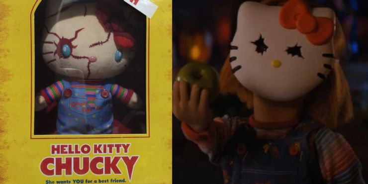En su búsqueda para matar al matón de Jake, Lexy Cross, Chucky usó un Hola gatito máscara para hacerse pasar por un truco o tratante. La elección permitida Chucky para hacer una referencia muy profunda a la mercancía ofrecida por Universal Studios Japón, que durante mucho tiempo ha cruzado arroyos entre Chucky y Hola gatito para una variedad de peluches. El disfraz de Chucky se convirtió oficialmente en el canon cruzado.