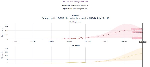 En México se podrían alcanzar hasta 136 mil 769 muertes por Covid-19 en septiembre próximo, de acuerdo con una proyección realizada por el científico del Instituto de Tecnología de Massachusetts (MIT), Youyang Gu.