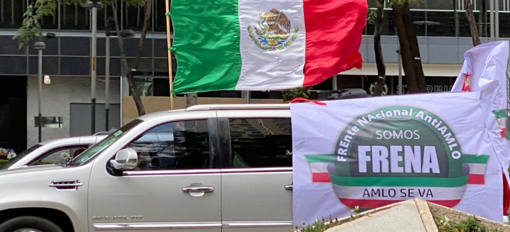 La movilización sobre ruedas fue convocada por el Frente Nacional Ciudadano, Frente Nacional Anti-AMLO (FRENA) y el Congreso Nacional Ciudadano, cuyos integrantes informaron que se decidió avanzar sobre ruedas en obediencia a medidas de sana distancia.