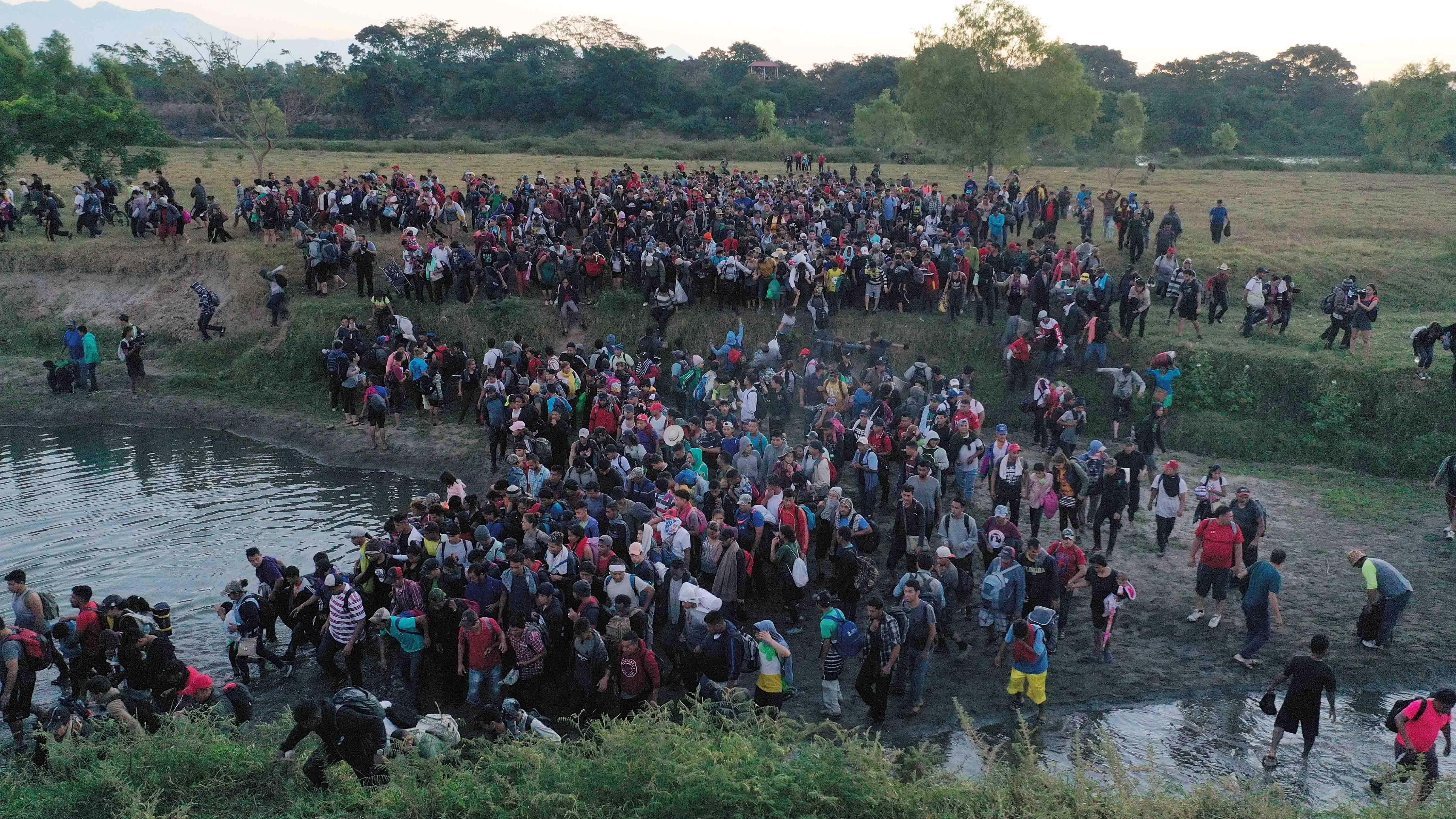 Los migrantes – fuentes periodísticas hablan de hasta 2,000 personas – empezaron a congregarse sobre las 4 a.m. hora local de este jueves y alrededor de una hora después empezaron a cruzar el río en caravana, que tiene un cauce bajo, aunque lleva algo más de caudal que en días pasados.