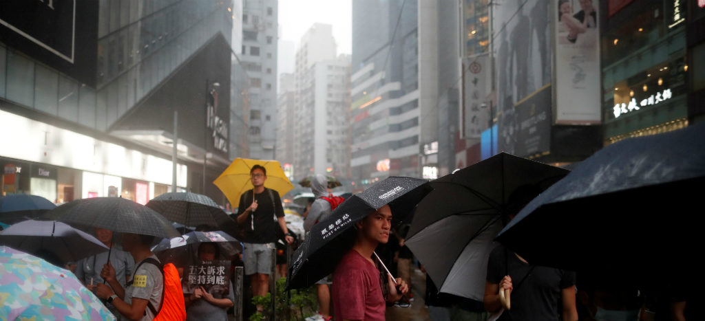 Durante su recorrido, que estuvo acompañado de la lluvia, los hongkoneses reiteraron las cinco demandas del movimiento contra la ley de extradición: el retiro total del controvertido proyecto de ley, la calificación de sus protestas como “disturbios” y la liberación incondicional de todos los detenidos.