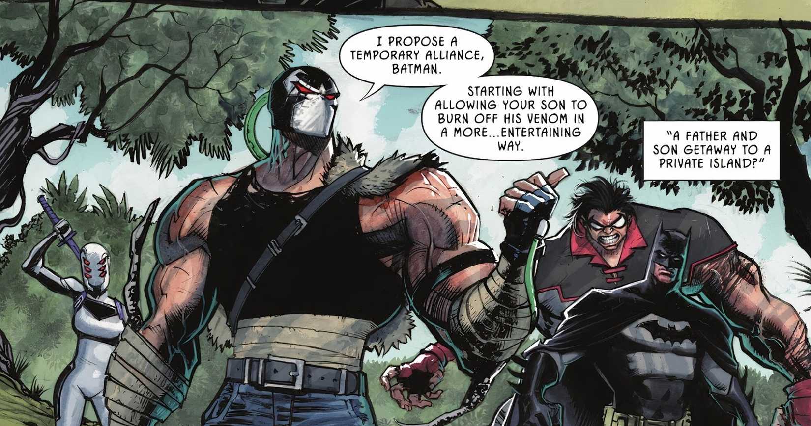 La decisión de Bane de salvar a Bruce y Damian muestra uno de los crecimientos de personaje más dramáticos que los fanáticos hayan visto en un villano de Gotham en años.