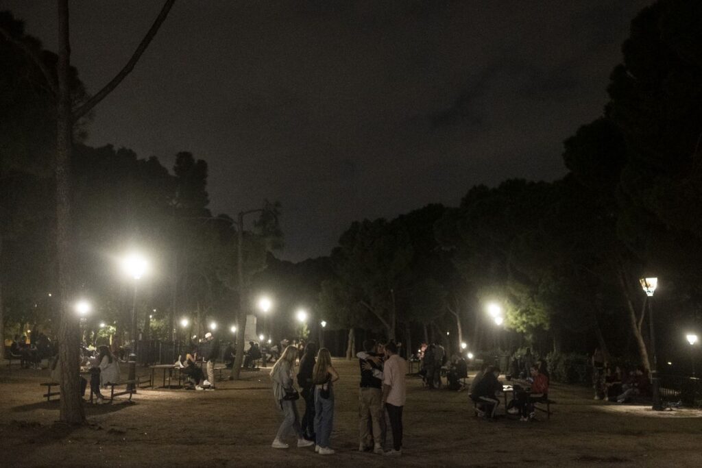 Ni la lluvia, ni el dispositivo policial extraordinario han podido con el botellón este fin de semana en Madrid. Aunque sí frenaron el macrobotellón organizado por los estudiantes de la Universidad Complutense el pasado jueves, este sábado cientos de jóvenes, muchos de ellos sin mascarilla y sin respetar la distancia de seguridad, bebían al aire libre en el parque de Berlín, al otro lado de la ciudad, según se observa en las imágenes difundidas por Europa Press. Incluso el viernes, pese a que la tormenta y los agentes desplegados por la ciudad habían desalentado las reuniones masivas de jóvenes en los puntos habituales del botellón en la capital —en el campus de la Complutense, el parque del Oeste, el de Las Vistillas o en Madrid Río—, pequeños grupos resistían en esas zonas. La mayoría de estos jóvenes coinciden en que no pueden permitirse ir a una discoteca porque los precios son muy altos. Además, admiten que las restricciones, como la prohibición de bailar en el interior de los locales, son uno de los motivos por los que prefieren seguir en la calle: “El botellón no se va a acabar hasta que bajen los precios de las discotecas”.