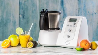 Funciona con tecnología de inducción y dispone de hasta 10 funciones programadas como amasar, emulsionar, pulverizar o sofreír, entre otras. Su potencia alcanza 1.600 vatios y la temperatura máxima de cocción llega hasta los 140 grados. Una de sus funciones destacadas es la balanza integrada de gran precisión. Por lo demás, viene con un completo kit de accesorios, tiene dos años de garantía y se puede acceder a su recetario ilimitado vía wifi y a otro más reducido guardado en la memoria del aparato.