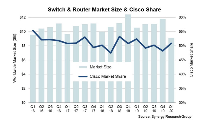 Ayer mismo, Synergy Research publicó su red informe de ingresos del conmutador y del router y no fue genial. Como las empresas se han acurrucado durante la pandemia, han estado comprando mucho menos hardware de red, dejando los números del primer trimestre a siete años de menos. Eso se tradujo en 1.000 millones de dólares menos en ingresos totales en esta categoría, según Synergy.