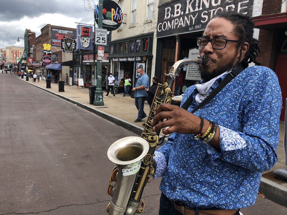 El saxofonista Coleman Garrett III en una calle de Memphis. / A. M.Amanda MarsCuando rozan las once de la noche, empieza a despedirse el cantante del club del viejo rey de la lucha libre King Jerry Lawler, una celebridad de Memphis que hace cuatro años, pasados los 65, probó suerte en la calle en la que tanta gente ha probado a lo largo de la historia: Beale Street. Apenas queda media docena de personas dentro del local ese último viernes de verano tan sombrío, con la calle más vibrante de la ciudad a media asta y los músicos tocando casi sin público, ausente como está aquella masa humana que solía tomar la calzada. Este 2020 de la pandemia solo queda un puñado de almas paseando por el bulevar del blues, pero los que permanecen tiran de épica, dispuestos a alargar la noche hasta el hallazgo de la vacuna contra el virus.“¡Es su cumpleaños, es su cumpleaños…!”, grita una joven, reclamando unos bises a la banda, agarrada del brazo de otras dos muchachas. La noticia despierta tanto entusiasmo en otra pareja de amigos que está en el local que uno diría que es la primera vez que se encuentran a alguien de aniversario; y todos, bastante borrachos y sin mascarillas, se abrazan, felicitan y besan con una euforia al final ya impostada.Es difícil saber qué queda de real en un sitio tan cambiadoExiste toda una industria de la nostalgia musical, que se parece mucho a la nostalgia a secas, en Memphis: Elvis Presley, B. B. King, Sun Records… Y Beale Street es su centro neurálgico, un salón de la fama para la música negra, un bulevar de locales con solera donde en una década u otra alguien dio un concierto legendario, donde se apostaba y se vendía absenta. “Te encontrarás con hombres honrados y carteristas mañosos, te encontrarás que los locales no cierran hasta que alguien muere… Si Beale Street pudiese hablar, si Beale Street pudiese hablar, los hombres casados tomarían sus camas y se irían”, escribió hace unos 100 años W. C. Handy, el autoproclamado padre del blues.Handy contaba que en 1903, cuando esperaba un tren en la estación de Tutwiler (Misisipi), escuchó a un músico tocando la guitarra con una navaja y provocando el llamado efecto slide, ese que arranca de las cuerdas un sonido melancólico. Era, dijo, “la música más rara que jamás había oído” y el compositor se lo presentó al mundo. Su casa-museo es uno de los atractivos más de la nueva Beale Street, la Beale Street de hombres en sandalias. Hoy, sin embargo, apenas hay de estos. Hoy es una meca de turistas sin turistas, nostalgia de la nostalgia, en la que si algo ha sobrevivido son precisamente las navajas.La que el saxofonista Coleman Garrett II lleva en el bolsillo tiene nueve centímetros. Parecía el momento de marcharse cuando empieza a sonar Careless Whisper, de George Michael, y al acercarse al origen de la música se perfila la silueta de Garrett tocando el saxofón ante un trío de mujeres. Cuando termina, flirtea y les pide propina a partes iguales. Lleva una funda colgada del hombro y 20 años azarosos tocando en Beale Street.“Los músicos de la calle vivimos de las propinas, lo cobramos todo en efectivo y la gente lo sabe, así que tenemos que protegernos. Cuando salimos de Beale, nos dirigimos a nuestras casas: puede venir cualquier y robarnos. A mí la policía me ha registrado y arrestado por ello. Si eres blanco, puedes ir armado, si eres negro…”, se queja. Para lo que no toma la más mínima precaución es para el coronavirus. “Tengo inmunidad divina, no siento esta mierda”, exclama. Cuando empezó la epidemia y cerraron los clubes, perdió el trabajo y a su novia.Me había vuelto loca buscando Beale Street en Nueva Orleans por culpa de James Baldwin. En 1974 el escritor tituló una novela con el verso de Handy, If Beale Street could talk (Si Beale Street pudiese hablar), y, hace un par de años, Barry Jenkins la llevó al cine con una cita de Baldwin en la presentación: “Beale Street es una calle en Nueva Orleans, donde mi padre, donde Louis Armstrong nacieron”, dice, “cada persona negra de América ha nacido en Beale Street, ha nacido en el barrio negro de alguna ciudad, ya sea Jackson en Misisipi o Harlem, en Nueva York. Beale Street es nuestro legado”.Entregas anterioresSin embargo, ni encontré Beale Street alguna en Nueva Orleans, primera parada de este viaje, ni existe referencia a alguna calle así llamada en el siglo pasado, mucho menos ligada a Armstrong, que llegó al mundo en South Broad, junto al tribunal de tráfico. La referencia de Baldwin era, probablemente, una licencia poética que se tomó para hablar de ese mismo barrio negro conceptual en el que todo chico negro ha crecido. Tenía sentido escoger una vía con tanta historia agridulce, perteneciente además a una ciudad en la que tan solo seis años antes de la novela habían asesinado a Martin Luther King, también en Memphis. “Beale Street es una calle ruidosa”, dice a su vez Baldwin, “le queda al lector discernir el significado del ruido”.Es difícil discernir el significado de la crisis, qué queda de real y no real en una calle Beale tan desnaturalizada. La tienda de empeños más cercana, en la avenida Poplar, pinta un retrato más certero de la realidad al día siguiente de esa noche metanostálgica. Una docena de guitarras cuelga de una de las paredes, con precios que van de los 70 y a los casi 200 dólares. La dependienta, Alaina Mickens, de 22 años, explica que hay quien llora al dejar sus pertenencias porque sabe que no las recuperará. Lo más vendido y comprado son los aparatos electrónicos, no las joyas. “No todo el mundo tiene joyas que empeñar”, aclara.Acto seguido es la cita con el saxofonista Coleman Garrett II para hablar con más calma y tomarle fotos a la luz del día. La camarera que atiende en el restaurante lo conoce y le hace un comentario al oído. “Yo no soy siempre este tipo”, le responde él.A la calle han llegado ya algunos turist