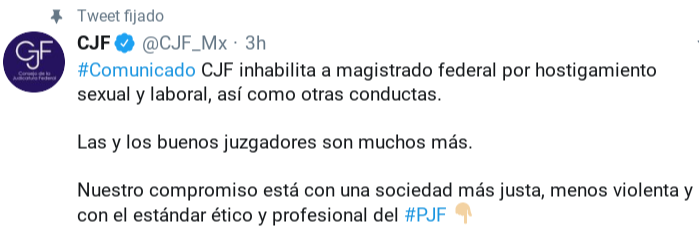 “El CJF ha adoptado, y seremos firmes en ello, un compromiso de cero tolerancia ante la violencia de género, en cualquiera de sus manifestaciones”, añadió.