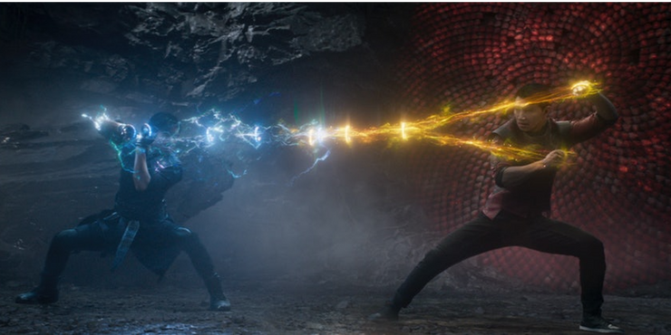 Inicialmente, la batalla final de Shang-Chi y la Leyenda de los Diez Anillos parece la misma secuencia de batalla vista en innumerables películas anteriores de Marvel. En el reino místico de Ta-Lo, una banda de artistas marciales con superpoderes se enfrenta al poder de los Diez Anillos en combate.