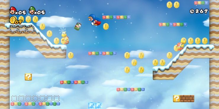 Nuevo super mario bros. Wii fue el gran éxito de la serie. Apareciendo en la extremadamente popular consola Wii de Nintendo, permitió que las personas finalmente jugaran para cuatro jugadores simultáneamente. Hizo mucho para despertar la nostalgia de los jugadores, como traer de vuelta a Yoshi y los Koopalings. También trajo muchas mecánicas nuevas, como el hongo de hélice y el traje de pingüino, dos de los mejores potenciadores modernos.