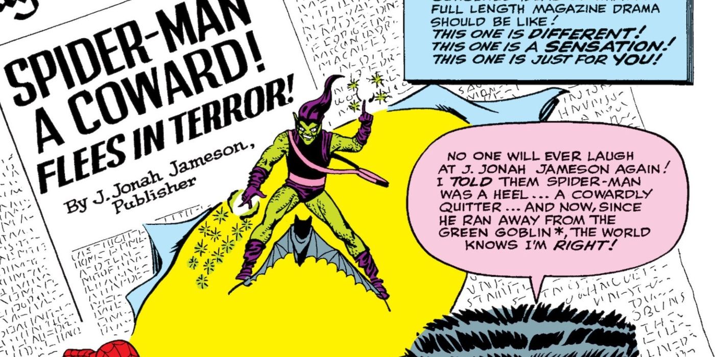 “/> Si bien esto está en el ámbito de la verdad observable, la afirmación de que Spider-Man se escapó durante esta pelea en particular contra el obviamente villano Duende Verde porque es un cobarde es una invención completamente injustificada. Es cierto que Spider-Man se escapó después de que el nivel de amenaza del Duende fue neutralizado efectivamente (incluso si Gobey todavía estaba prófugo al final), pero solo lo hizo después de descubrir que la tía May tuvo un ataque cardíaco y estaba en el hospital.