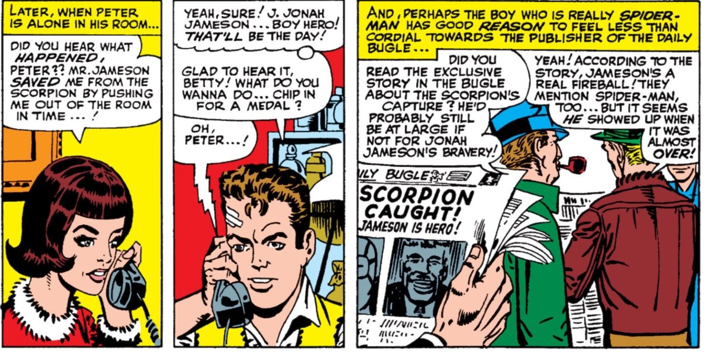 4 “¡Escorpión atrapado! ¡Jameson es un héroe! Daily Bugle miente sobre Spider-Man al omitirlo