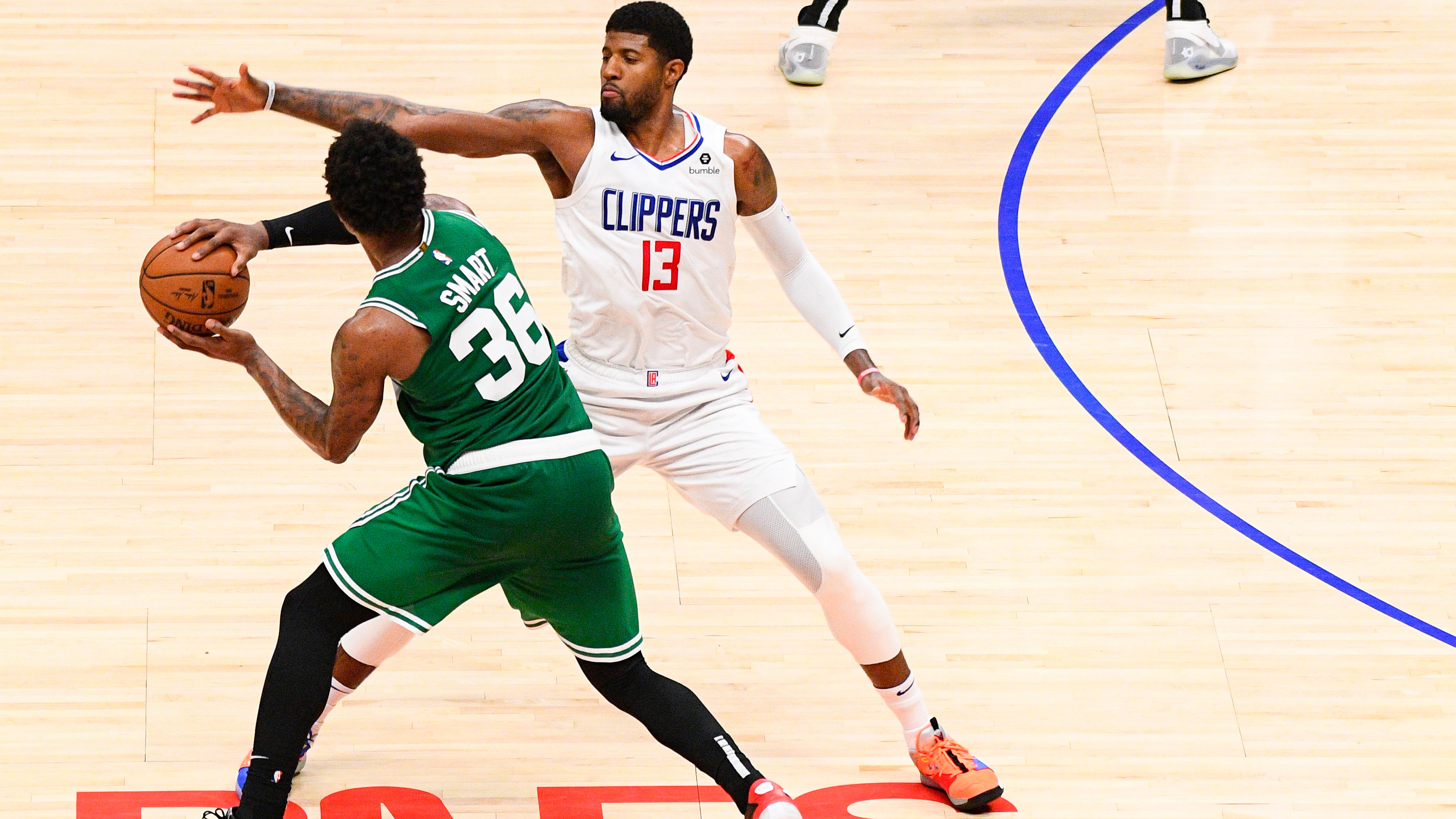 Con Kawhi Leonard, Paul George y Lou Williams en la cancha, los Celtics de Boston tuvieron que dejar a alguien sin marcar.
