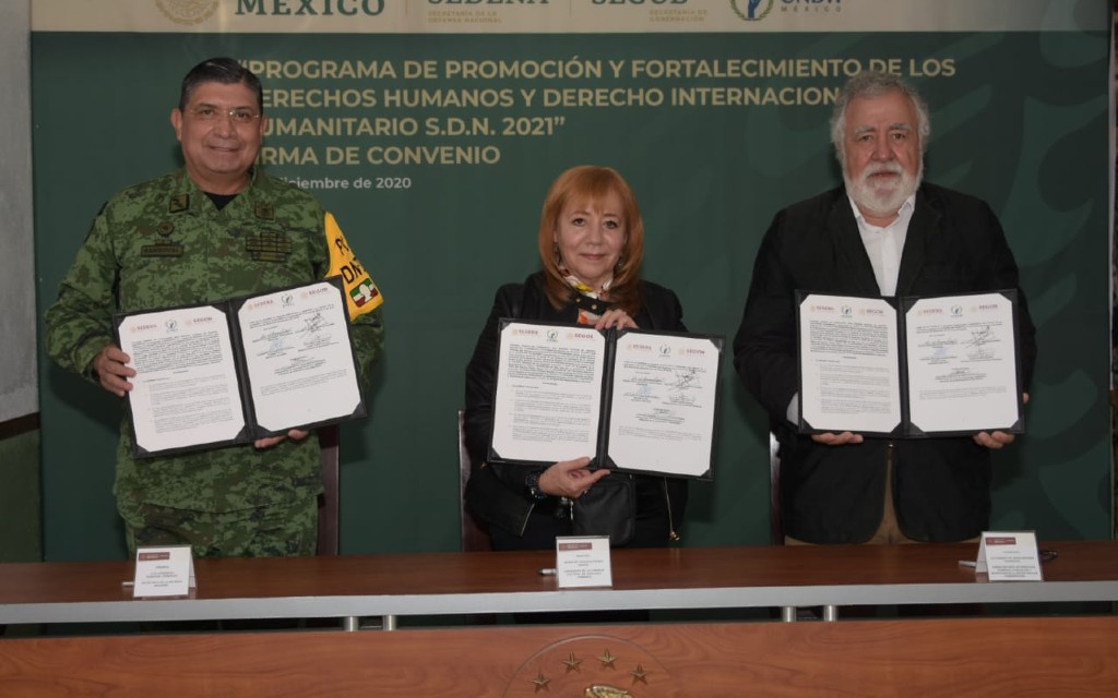 Hoy firmamos con la Pdta. @CNDH @RosarioPiedraIb y el Subsrio. @A_Encinas_R, el Convenio General de Colaboración para impulsar la capacitación en materia de protección y promoción de los #DDHH al interior de este Instituto Armado, como compromiso de respeto a los #DerechosHumanos pic.twitter.com/FPcubM3D7W