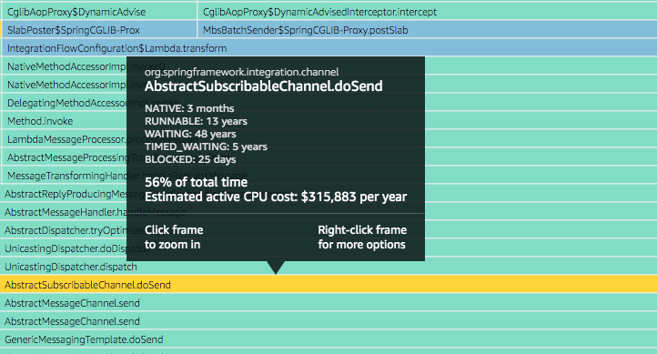 Una característica que el equipo agregó desde que anunció CodeGuru por primera vez es que Profiler ahora asigna una cantidad estimada en dólares a las líneas de código no optimizado.