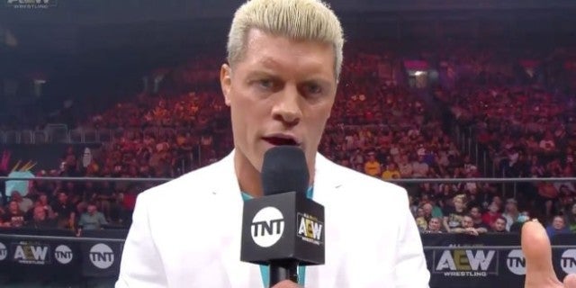Cody Rhodes llegó al especial de AEW Dynamite’s Bash at the Beach esta semana vestido con su mejor atuendo de Miami Vice para entregar un mensaje especial a Maxwell Jacob Friedman: acepta sus términos para un partido en AEW Revolution. Para que Rhodes tenga en sus manos al hombre que le costó el Campeonato Mundial AEW, Rhodes no puede tocar a MJF hasta el partido, tiene que enfrentarse a Wardlow dentro de una jaula de acero y tiene que tomar 10 azotes con un cuero. cinturón de MJF en vivo en Dynamite. Rhodes irrumpió en MJF diciendo que simplemente se estaba quedando sin tiempo, pero que no se retiraría de la pelea.