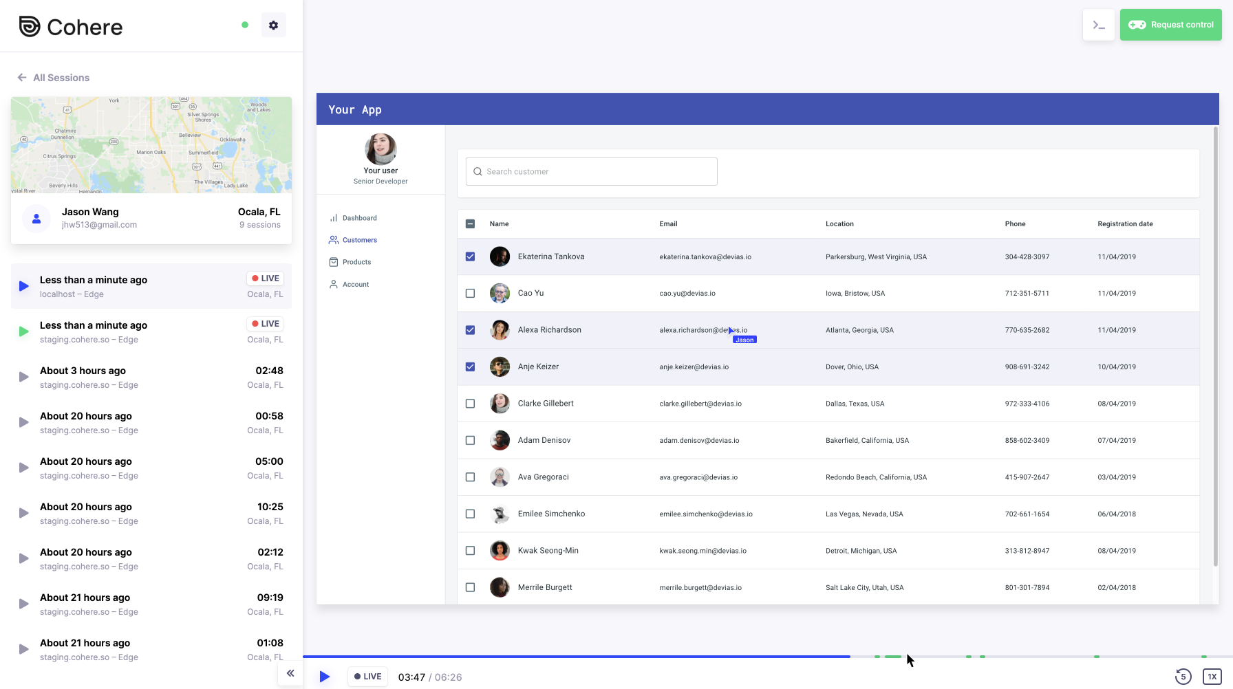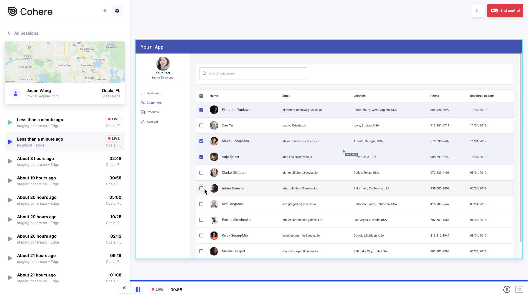 La tecnología de la startup en sí se basa en capturar el estado de la página web: una imagen del DOM, por así decirlo, para aquellos que entienden la terminología. Luego aprovecha cosas como MutationObservers y WebSockets para hacer posible ver rápidamente los cambios en las páginas web en tiempo real. Cohere también dedicó tiempo a asegurarse de que funciona con una variedad de tecnologías y marcos web, incluidos React, Iframe, Canvas, Vue, Angular y otros. Con el tiempo, quiere expandir el soporte a más plataformas y tecnologías.