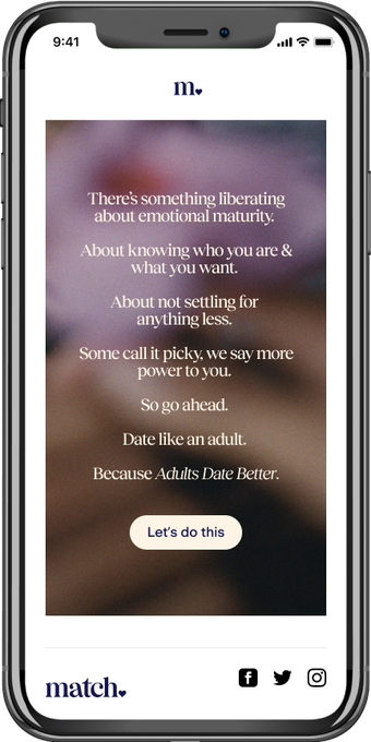 Las funciones están diseñadas para abordar los desafíos que enfrentan los grupos demográficos de mayor edad de Match. Los usuarios de partidos tienden a tener más de 30 años y tienen una vida plena. Por lo general, están listos para entablar relaciones y establecerse con una pareja. Esa es una fase de la vida diferente a la de aquellos que usan otras aplicaciones de citas Match, como Tinder, donde los usuarios más jóvenes aún se encuentran en una fase más exploratoria y disfrutan de muchas citas, incluidas las citas casuales.