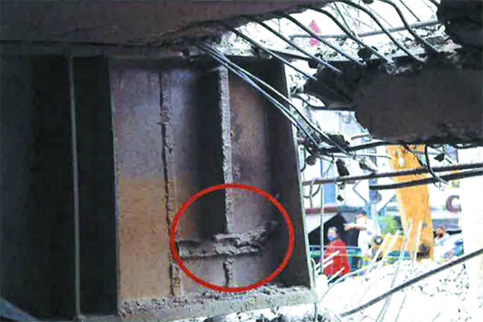 “Presenta otras fotografías en las que se pueden ver que las trabes de acero tienen soldadura no concluida, con bifurcaciones, e incluso en algunas se observa la rotura total de la misma”, dice el diario.