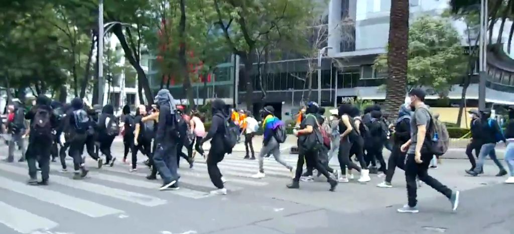 Hasta el momento se reportan algunos destrozos a comercios sobre el Paseo de la Reforma, efectuados por personas encapuchadas. Medios han reportado la presencia de hombres, siendo que la convocatoria publicada en redes sociales era solo par mujeres.