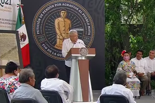 El presidente Andrés Manuel López Obrador encabezó la ceremonia de petición de perdón al pueblo maya por los abusos que cometieron particulares y autoridades nacionales y extranjeras en la Conquista, durante la colonia y en dos siglos del México independiente.