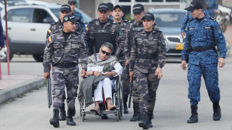 Por la tarde, decenas de periodistas y simpatizantes del detenido que esperaban frente a La Picota, algunos con camisetas del partido FARC y pancartas en las que se leía “Libertad ya”, vieron por fin como salía libre, en una silla de ruedas y rodeado por agentes del Inpec, la Fiscalía y la Policía.
