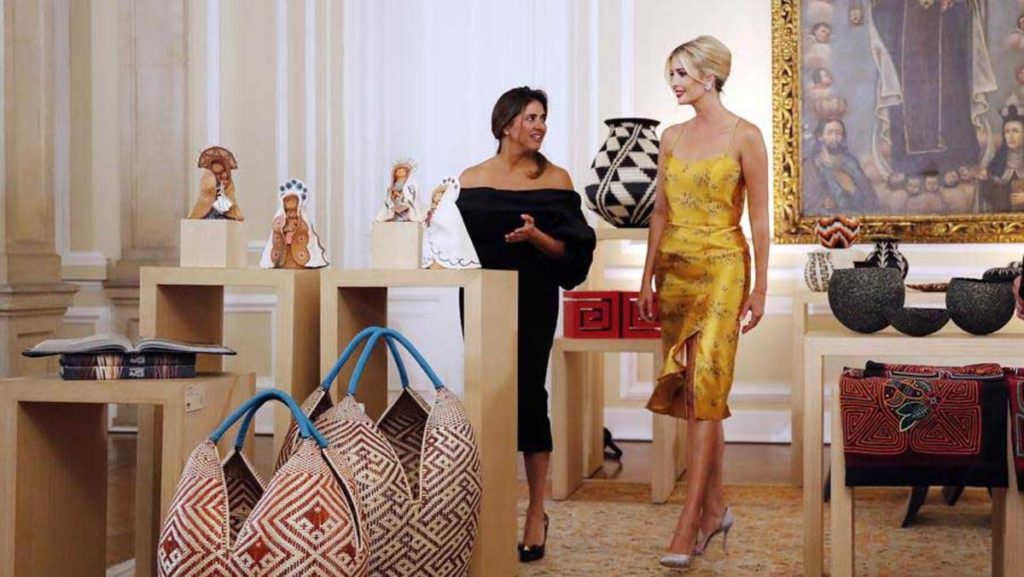 “Ivanka Trump lució un vestido de Johanna Ortiz en Bogotá, Colombia, hoy”, informó la cuenta de Twitter White House Fashion, especializada en comentarios sobre los atuendos que lucen los integrantes de la familia presidencial.