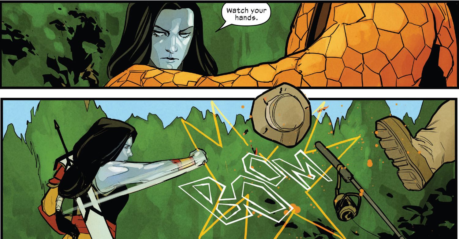 En X Men #27 – de Gerry Duggan, Phil Noto y Clayton Cowles: un pequeño grupo de mutantes, liderados por Rasputín IV, se dirigen a la granja de Ben Grimm en un intento de obtener respuestas de Reed Richards sobre cómo ocultar el gen X.