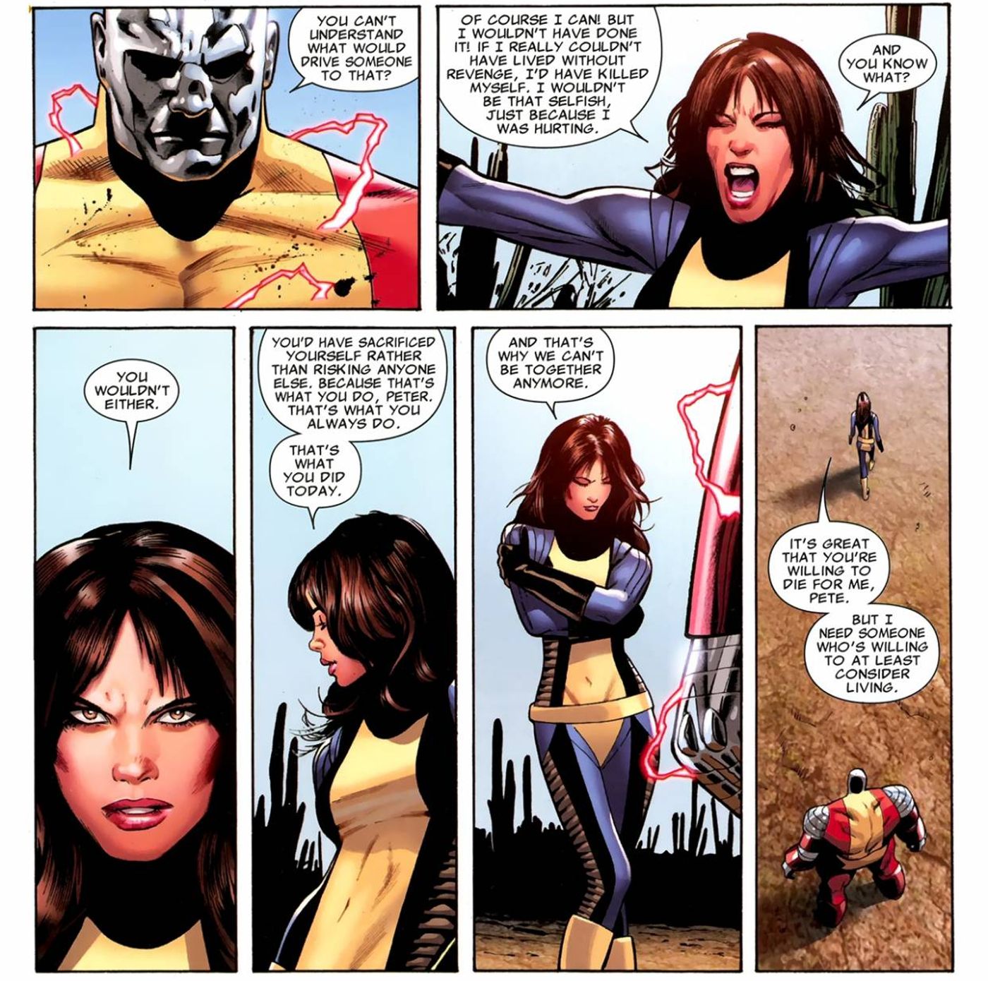 El momento más heroico de Colossus ocurrió en Extraños X-Men #390 – por Scott Lobdell, Salvador Larroca, Danny Miki y Tim Townsend – cuando se sacrificó para dispersar de forma segura la cura para el virus Legacy que ataca a los mutantes entre la población mutante global.