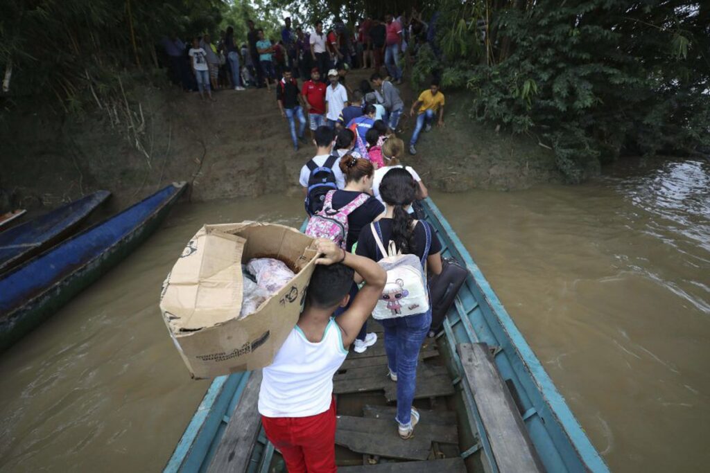 Venezolanos desplazados por los choques armados bajan de un bote en el río Arauca, en una imagen de marzo pasado.FERNANDO VERGARA (AP)