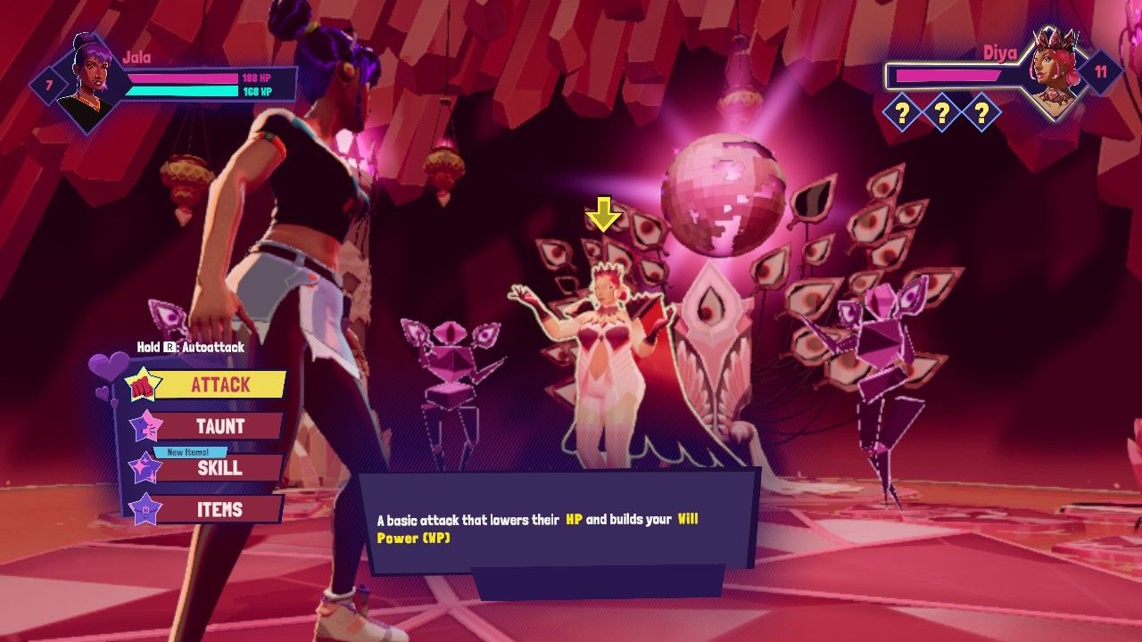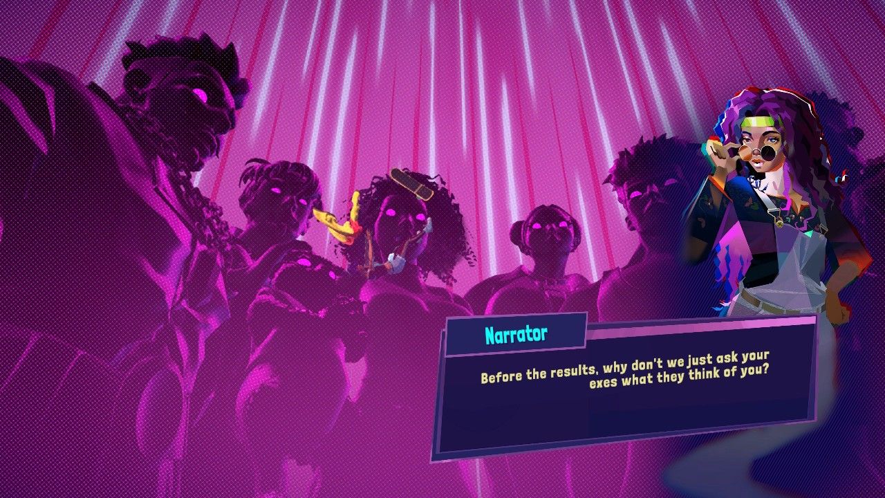 Por ejemplo, si un enemigo está en un estado de ánimo específico que se aprovecha mejor con el mismo movimiento especial cada turno hasta que desaparezca, hacer los mismos movimientos repetidamente puede volverse un poco viejo. Sin embargo, el concepto de explotar la debilidad emocional de los enemigos junto con la física es creativo de una manera que nunca pasa de moda. Jala luchará contra skate punks y pretendientes aleatorios no deseados enviados por su abuela, pero las batallas más importantes son las de cada ex, que tienen lugar en entornos intensamente estilizados destinados a representar su mundo interior. Estos alternan peleas y conversaciones, y terminan con los dos reconciliándose una vez que Jala gana.