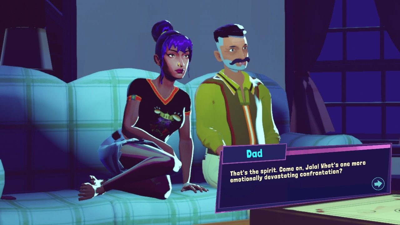 La cultura de la familia de Jala también juega un papel importante en la historia general del juego: su madre es de la India, mientras que su padre es de Sri Lanka, lo que proporciona una mirada auténtica a la cultura del sur de Asia. Gran parte del conflicto de Jala con su familia tiene que ver con cosas como expectativas culturales y traumas generacionales y se maneja con cuidado, sin sentirse nunca demasiado pesado y al mismo tiempo siendo perspicaz y identificable. La lista de ex de Jala también es diversa por derecho propio y representa una serie de identidades y culturas LGBTQIA de una manera que se siente convincente y genuina.