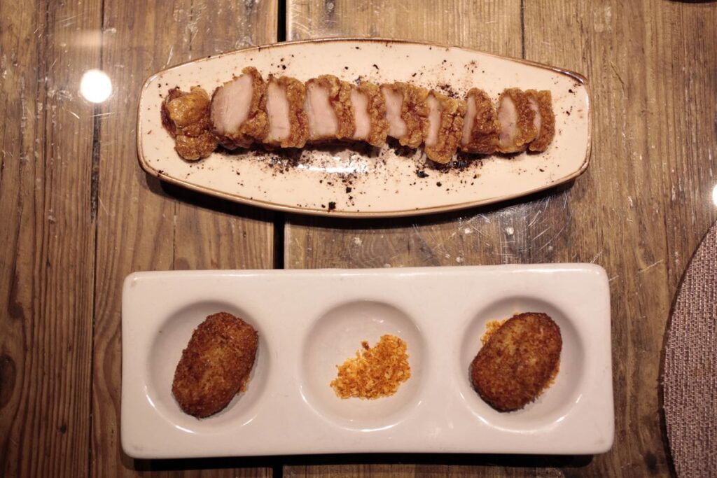 Esta temporada, Ferretería ha dado un giro a su carta con el nuevo equipo al frente de la gastronomía. La nueva es más sencilla y en su cocina solo usan productos nacionales que saben respetar con elaboraciones honestas. Diego Ferrer asegura que solo cuentan con proveedores de primera como, por ejemplo, Pescaderías Coruñesas, y que todos los embutidos provienen de León, de donde es Toñi. En esta oferta destacan buenas opciones para compartir como los crujientes y sabrosos torreznos (7,50 euros la ración), la oreja de cerdo laminada y sellada con salsa romesco y chimichurri (12 euros), unas exquisitas croquetas de cecina o jamón sobre migas extremeñas (2, 8 euros la unidad) y buñuelos de cecina con alioli de manzana y cebollino (5 euros).
