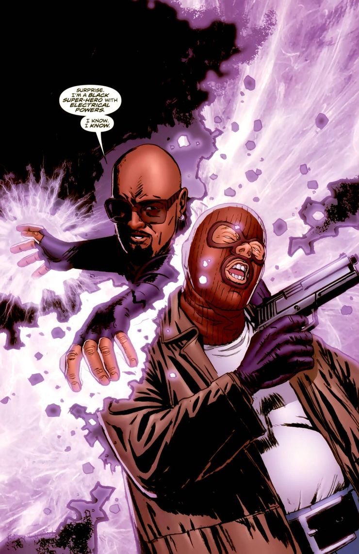 Un cómico una vez llamó a los muchos superhéroes negros que tienen poderes similares basados en la electricidad. El escritor aclamado por la crítica Mark Waid llamó la atención sobre el extraño fenómeno en Boom! serie de estudios, Irredimible.