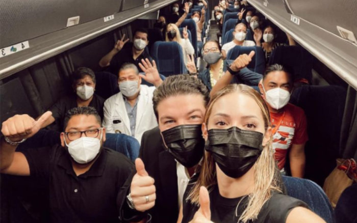El gobernador electo y su esposa, la influencer Mariana Rodríguez, también se vacunarán en Laredo, Texas. Ellos viajaron también en uno de los autobuses.
