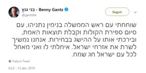 “Seguiremos sirviendo a los ciudadanos de Israel. Le deseo a él y al todo el pueblo judío felices fiestas“, escribió Gantz en un tuit.