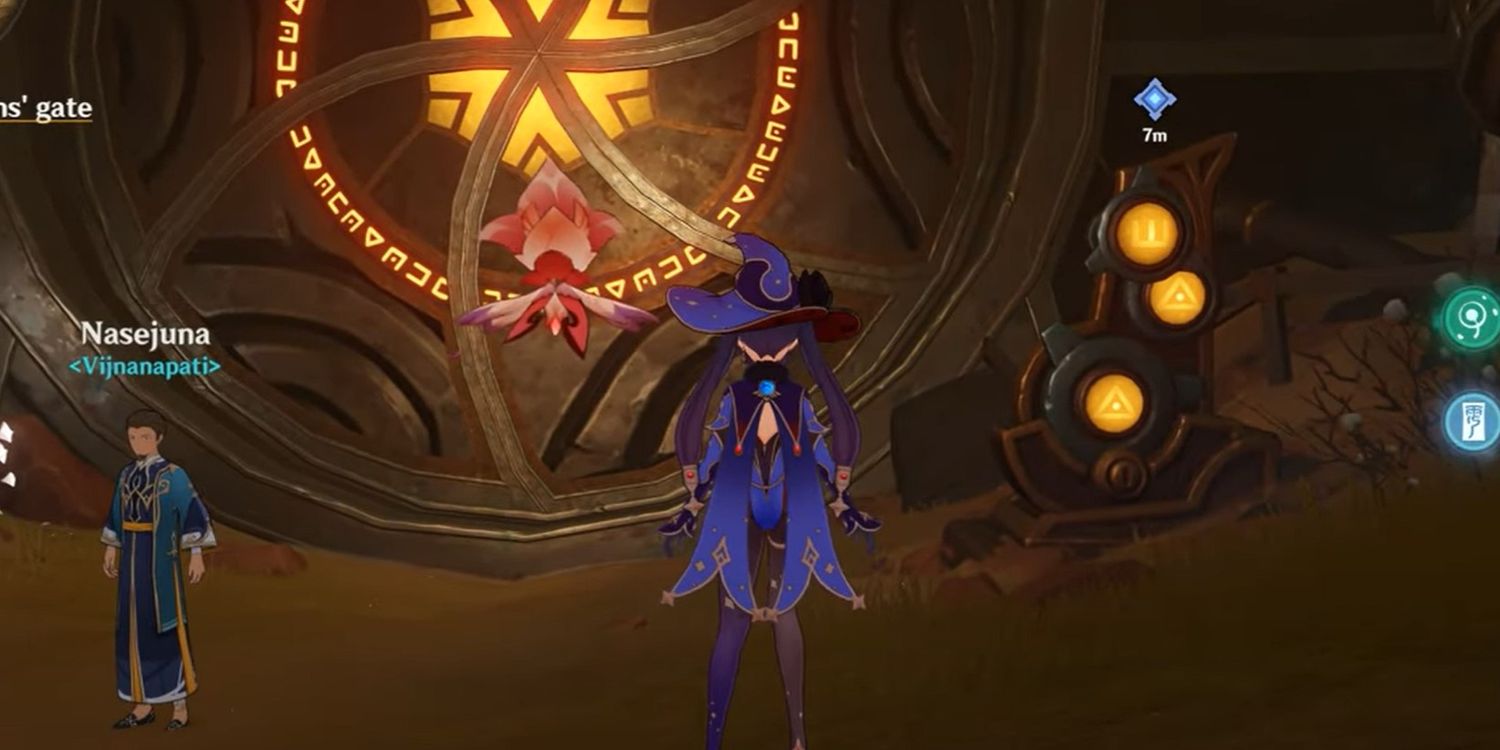 Después de derrotar a los enemigos atrapados en el cristal, los jugadores adquirirán el bloque de energía que necesitan y deberán buscar una forma de salir del pasaje. Afortunadamente, otro camino conduce de regreso a Nasejuna, encerrado detrás de una segunda puerta. El Khvarena usado anteriormente deambulará por la habitación y ocasionalmente pasará por la pared detrás de los engranajes. Cuando lo haga, revelará la orden para girar las tres marchas; cuadrado, W y cuadrado. Después de esto, los jugadores tienen que luchar contra algunos Ruin Guards y recolectar Impacto GenshinLa Gran Canción de Khvarena.