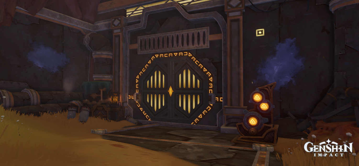 Como dicen las Notas de investigación de Rene, la runa del triángulo debe permanecer en la marcha más baja, por lo que hay no hay necesidad de tocar ese engranaje. Para conectar el triángulo al cuadrado, los jugadores deben girar el engranaje central para mostrar el símbolo del cuadrado. Esto pondrá el Runa W en la parte superior de la pila. Con esta orden solidificada, la puerta se abrirá en una breve escena, permitiendo que el Viajero, Paimon, Sorush y Nasejuna accedan a las ruinas más allá.