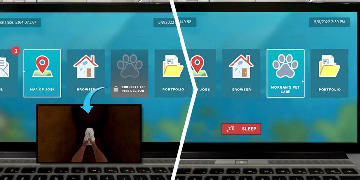 Manten eso en mente Mascotas es un DLC de pago para Aleta de la casa, lo que significa que debe comprarse en la tienda digital de la plataforma correspondiente. Una vez que el jugador agrega el Contenido descargable de mascotas a su cuenta, inician el juego para comenzar. Primero, diríjase a la computadora portátil en la página de inicio del reproductor y observe la nueva pestaña que dice: “Completa el trabajo DLC 1st Pets.” Esta pestaña sirve como botón para acceder a Morgan’s Pet Care, una nueva tienda en el juego donde los jugadores pueden elegir adoptar sus animales preferidos en Aleta de la casa. Sin embargo, como dice el mensaje inicial, el protagonista debe completar la primera misión del DLC en Aleta de la casa.