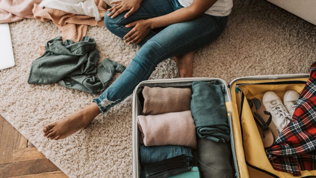 - Selecciona ropa y calzado que te guste ponerte y que sea imprescindible para el viaje teniendo en cuenta el clima y las actividades que vas a realizar en destino. Dobla la ropa de forma vertical, tanto camisetas como pantalones, así evitarás arrugas y ahorrarás mucho espacio.
