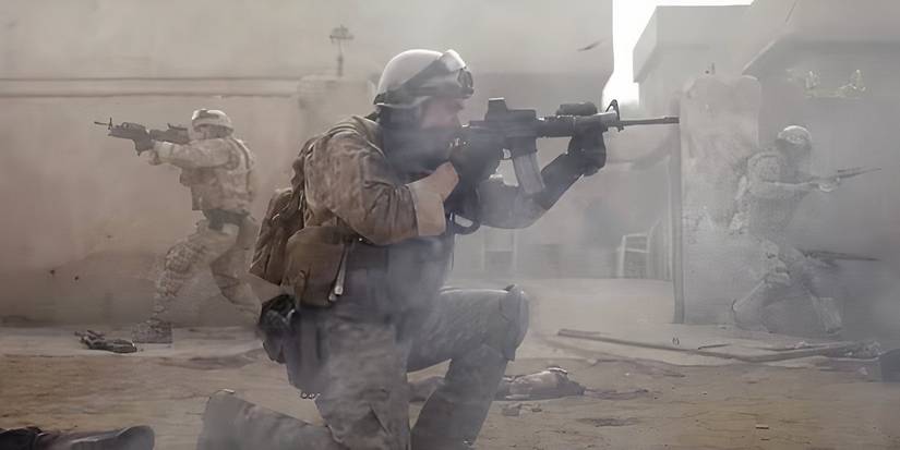 A24 Guerra Puede ser una de las películas más realistas sobre los militares jamás producidos, que es algo que Alex Garland y su codirector (un veterano de Navy SEAL) reveló que Ray Mendoza fue fundamental para la premisa durante un evento de preguntas y respuestas para la película. Basado en las experiencias de la vida real y los recuerdos de un pelotón de Navy SEAL de los EE. UU. Que fue capturado bajo fuego y fijado durante la ocupación estadounidense de Irak en 2006, Guerra es una película fenomenalmente construida que se beneficia enormemente de un sentido dolorosamente real de realismo.
