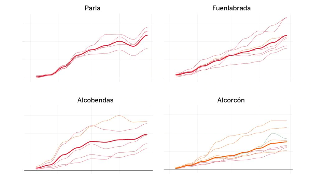 ¿Cómo avanza el virus donde hay más incidencia? Se aplana en Madrid pero crece en las ciudades de su periferia