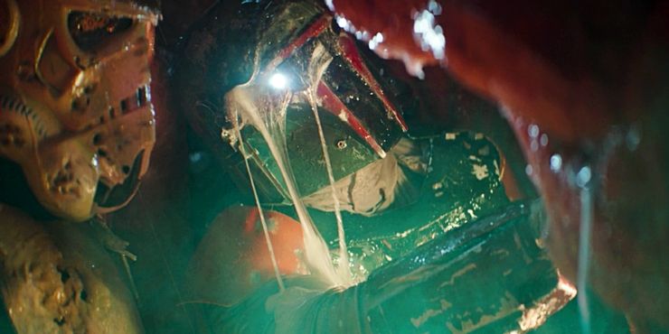 El mandaloriano La temporada 2 reveló que Boba Fett sobrevivió al Sarlacc y regresó para ayudar a Din Djarin a recuperar su pupilo Grogu cuando el Imperio secuestró al bebé sensible a la Fuerza. Finalmente, Boba Fett fue tratado como el rudo que merecía ser, con una secuencia de acción deslumbrante en la que se enfrentó a los soldados de asalto imperiales y los atravesó con facilidad. Pero su supervivencia no tuvo explicación hasta El libro de Boba Fett episodio 1, que contó con flashbacks que revelaron la verdad.