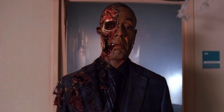 La escena tiene lugar en Breaking BadEl final de la temporada 4 de ‘s, cuando Gus Fring visita a su némesis de mucho tiempo, Héctor Salamanca, en su hogar de ancianos, con la intención de quitarle la vida. No sabía que Walter White se había encontrado antes con Héctor, quien accedió a que le instalaran una bomba en su silla de ruedas para vengarse de Gus. Cuando Gus se sienta frente al jefe del cartel, Héctor detona la bomba, lo que da como resultado un momento impactante y gráfico en el que se muestra a Gus saliendo de la habitación con la mitad de la cara volada, después de lo cual finalmente se derrumba en el suelo.