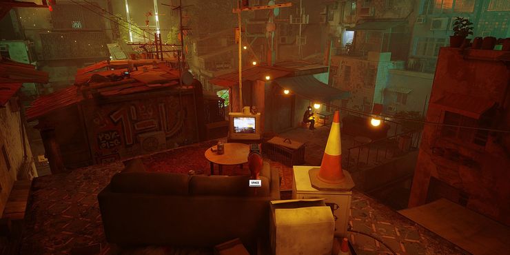 Hay muchos logros ocultos y cosas que hacer como un gato en Extraviadoy navegar por los canales de TV es uno de ellos. Extraviado ofrece a los jugadores una experiencia inmersiva de plataformas de rompecabezas en 3D. Al explorar una ciudad futurista como un gato, los jugadores pueden interactuar con objetos cotidianos, resolver acertijos y hacer lo que mejor hacen los gatos: provocar el caos. Al tomarse el tiempo para explorar e interactuar con objetos aleatorios, los jugadores pueden desbloquear diferentes logros, como callejeros Trofeo o Logro de Día Productivo, que los jugadores pueden ganar dejando que el gato duerma durante una hora acumulada de tiempo de juego.