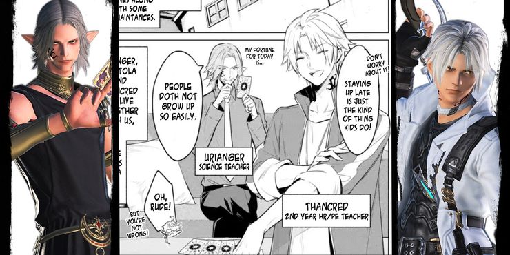 Urianger es profesor de ciencias en la Academia Eorzea pero mantiene su Fantasía final XIV El trabajo de astrólogo está cerca, ya que todavía adivina la suerte con las cartas. FFX IV lore lo ubica en 29 años, con Thancred en 32. Los dos siguen siendo amigos cercanos en este mundo y son los otros dos maestros que se quedan en la casa de Rising Stones. Thancred es profesor de segundo año y profesor de educación física, y parece un poco más informal que caminanteiteración paternal.